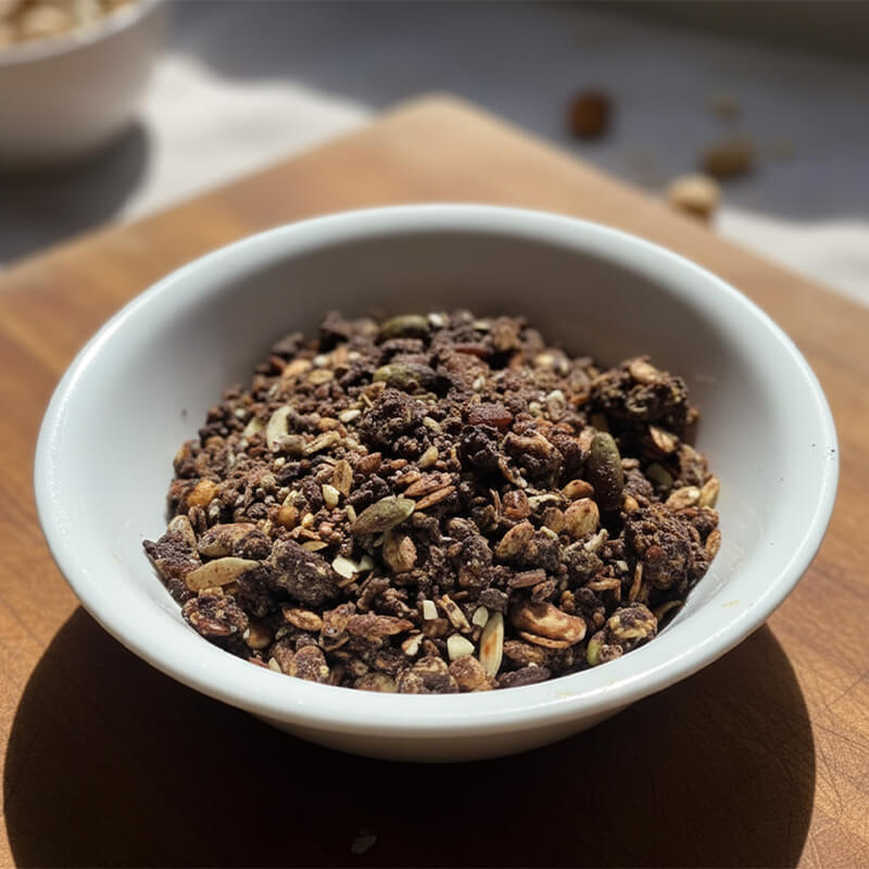 Crafted with wholesome ingredients like pumpkin, sunflower, watermelon, flax, sesame, and chia seeds, our Protein Granola is a delicious powerhouse. Packed with almonds, sattu, and dates, it delivers heart-healthy fats, fiber, protein, and essential minerals. Enjoy this guilt-free, preservative-free delight as a perfect breakfast, snack, or on-the-go treat for all ages. We even offer a diabetic-friendly version, made with sugar-free dark chocolate, ensuring everyone can savor its nutritious benefits. Indulge wisely!